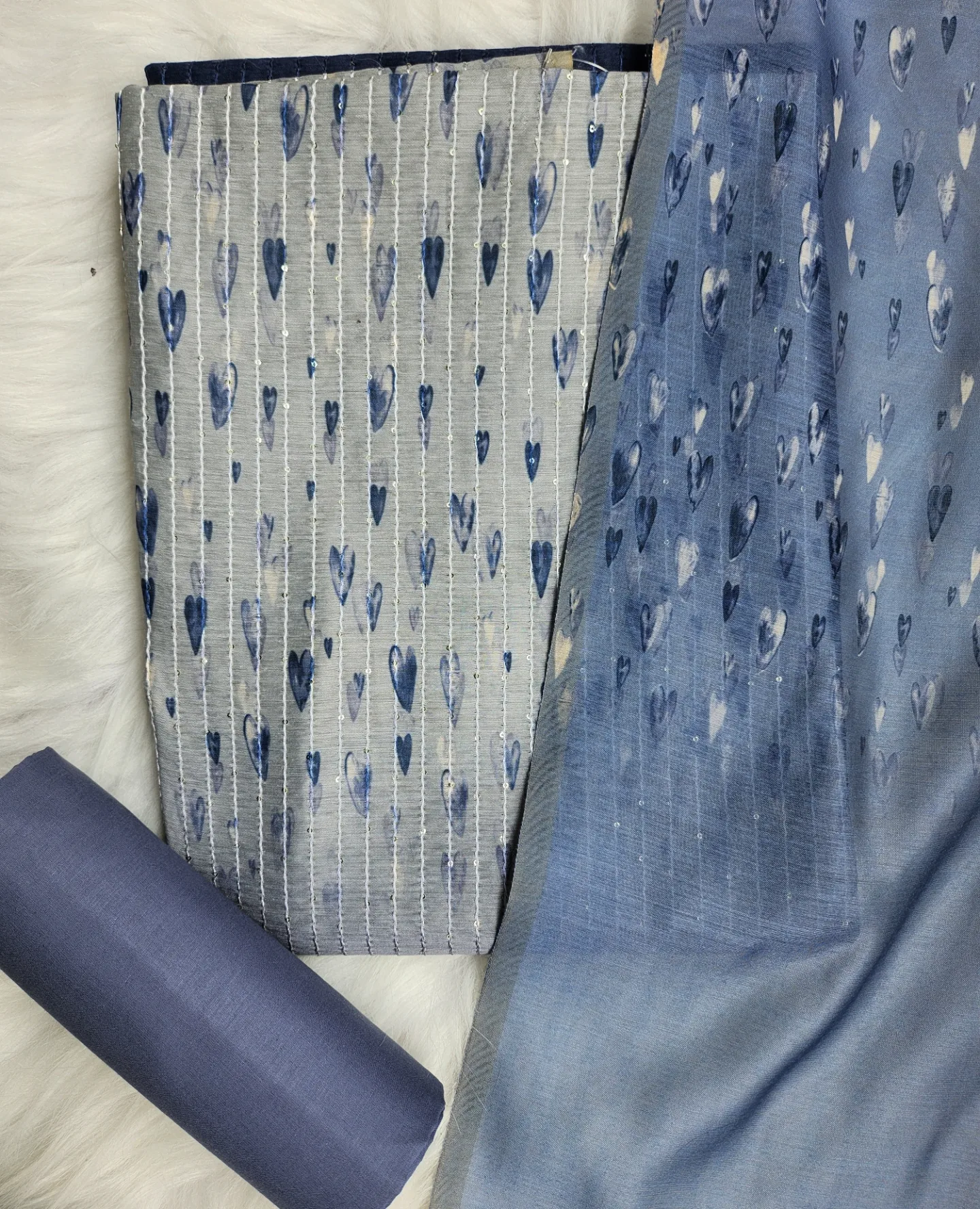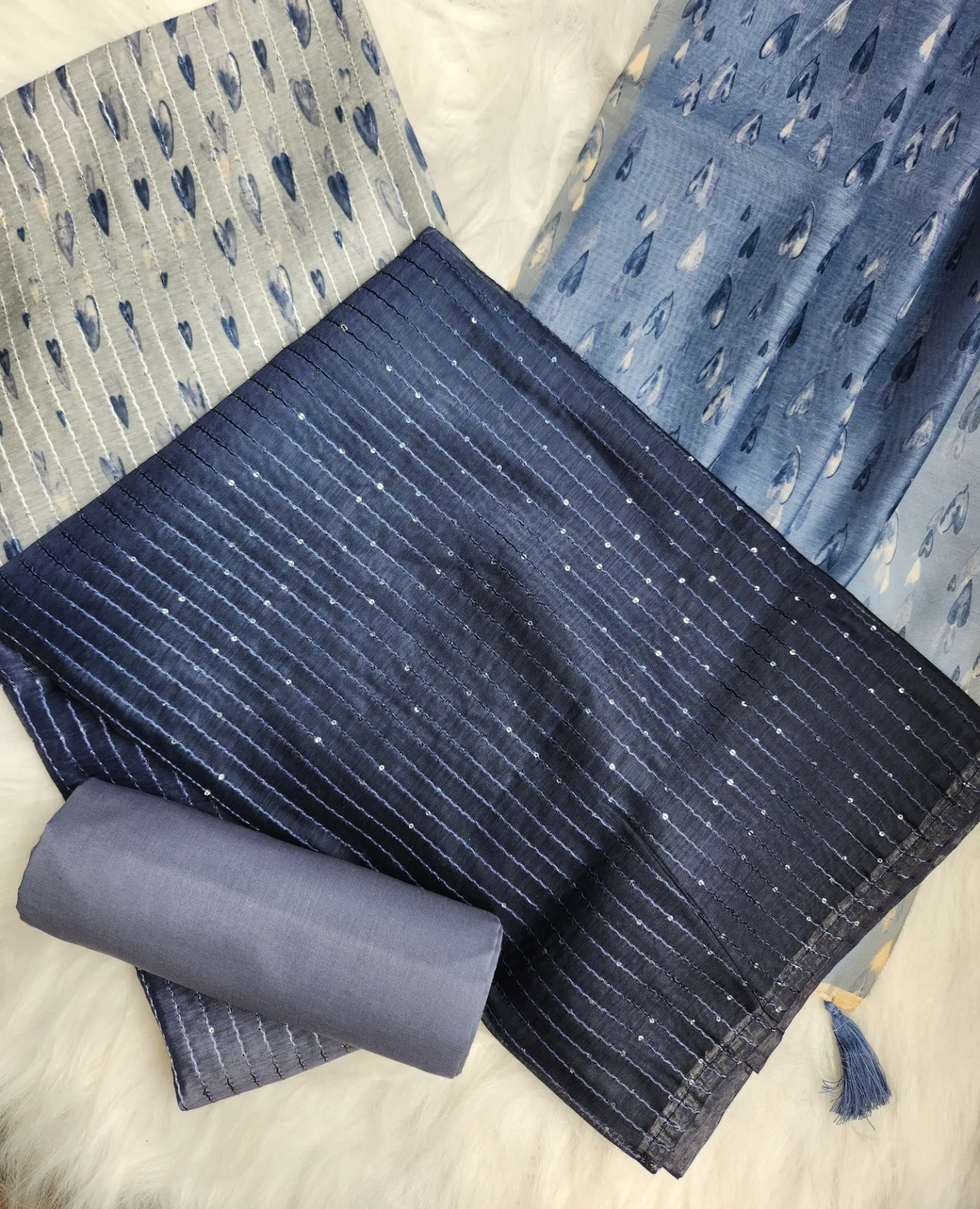 Top : Dual shaded Chanderi Cotton Fabric in blue color with heavy thread and sequence work, all over digital prints